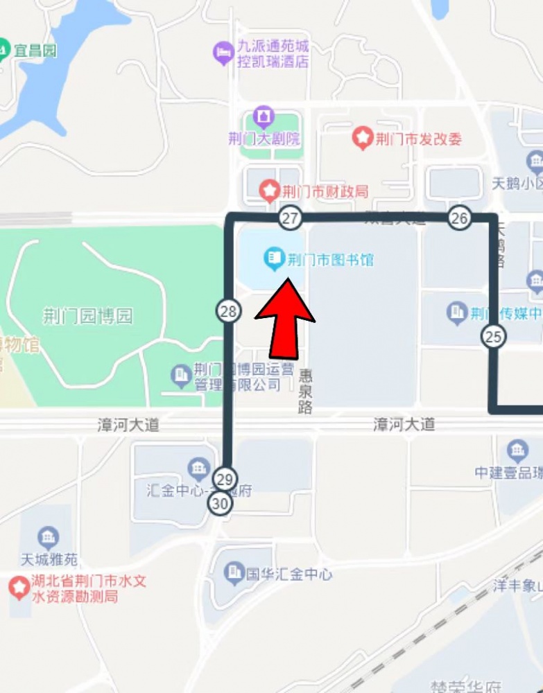二、乘坐21路(龍泉中學(xué)—漳河旅游碼頭)公交車到漳河大道園博園南門公交站點下車,然后向北大約步行670米。