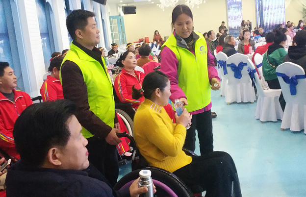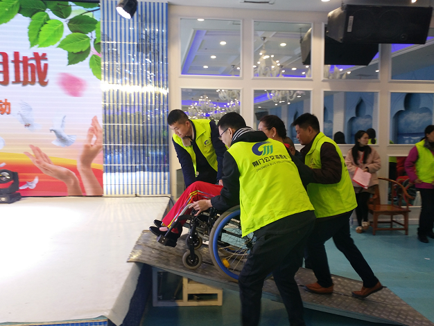 11月30日在荊門市殘疾人聯(lián)合會、荊門市智力殘疾人及親友協(xié)會、荊門市圓夢愛心幫扶會舉辦的主題為“包容殘疾人 創(chuàng)建文明城” 的“2018‘國際殘疾人日’紀念活動中,16名荊門公交志愿者在引導、簽到、幫助殘疾人出行、舞臺道劇、督導等志愿活動中,受到殘疾朋友們真誠的感謝和與會嘉賓、領(lǐng)導們的一致好評。