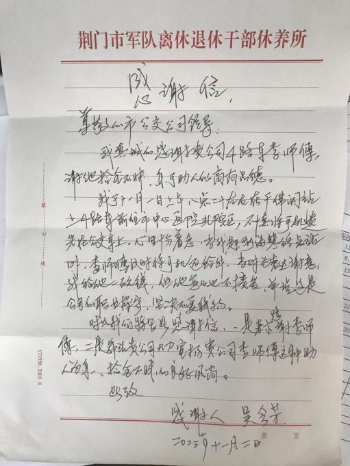 拾金不昧好司機(jī) 乘客寫信致謝