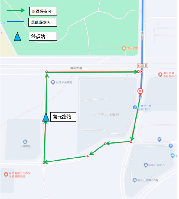 ◆??空军c(diǎn):原停靠站點(diǎn)不變,撤銷天山路“匯金中心”東側(cè)始發(fā)站點(diǎn)。新增??空军c(diǎn):寶元路